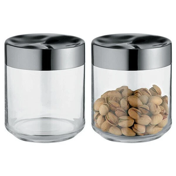 Die Küchendosen Julieta aus Glas und Edelstahl von Alessi können sich sehen lassen und sollten auf keinen Fall hinter Schranktüren verschwinden. Der Designer Lluís Clotet setzt dem glatten Behältnis aus Glas einen unebenen Deckel aus Edelstahl auf. Dieser Kontrast aus Materialien und Oberflächenbeschaffenheit macht diese Aufbewahrungsdosen zu spannenden Hinguckern. Bewahren Sie darin all das auf, was Sie in der Küche oder im Haushalt verstauen möchten – von trockenen Lebensmitteln im Küchenregal über Kosmetikartikel im Bad bis zu selbst gebackenem Gebäck in der Weihnachtszeit.