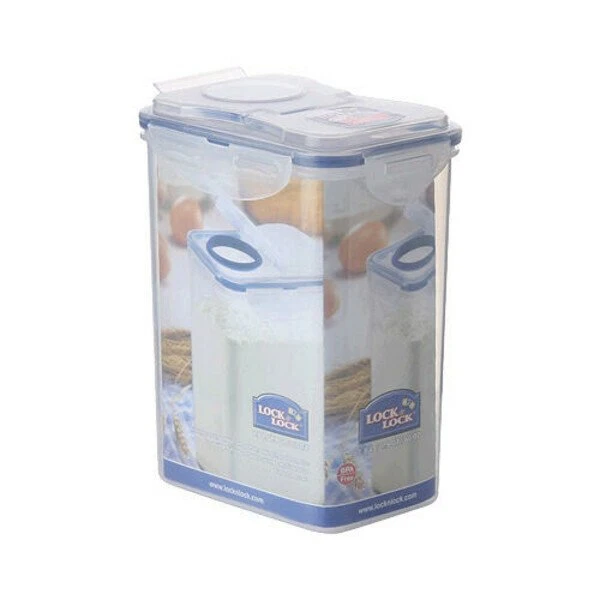 Die Frischhaltedose mit den Maßen 15,1×10,8×19 cm von Lock & Lock ist für handelsübliche Kilo-Pakete konzipiert. Vier Flügel-Sicherheitsverschlüsse und eine Gummidichtung halten Zucker, Mehl oder Nudeln trocken und aromadicht verschlossen. Sogar einen Sturz übersteht die robuste Box souverän. Der stapelbare Behälter schafft Platz und Übersicht in Schrank und Kühlschrank. Eine integrierte Streuöffnung mit arretierbarem Deckel verwandelt die transparente Vorratsbox in attraktives Tischgeschirr für Müsli oder Cornflakes. Die hochwertig verarbeitete Frischhaltedose ist BPA-frei sowie mikrowellen- und gefriergeeignet.
