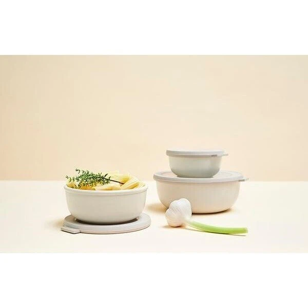 Die flache Multischüssel der Serie Cirqula von Mepal eignet sich besonders gut für die Aufbewahrung und den Transport von Gemüse und kleine Portionen von Hauptspeisen. Das Essen läuft nicht aus und wird frisch gehalten.