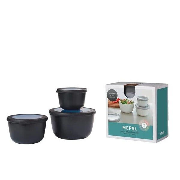 Das vielfältige Multischüssel-Set Cirqula der Marke Mepal eignet sich perfekt zum Aufbewahren, Einfrieren und Aufwärmen von Lebensmitteln. Die Schüsseln haben ein Volumen von 0,5 l, 1,0 l & 2,0 l. Der luftdichte und auslaufsichere Deckel sorgt für einen langen Erhalt frischer Speisen und schützt ihr Aroma. Außerdem bietet ein transparentes Fenster im Deckel einen Blick auf das Innere.