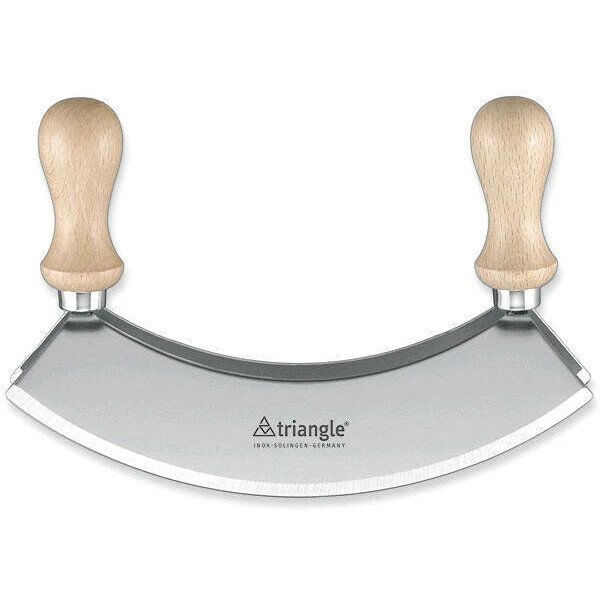 - zweischneidiges Wiegemesser mit ergonomisch geformten Griffen