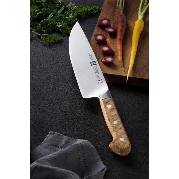 Die hochwertige Klinge des Kochmessers der Serie Pro Wood von Zwilling ist besonders scharf und begeistert durch ihre enorme Schnitthaltigkeit.