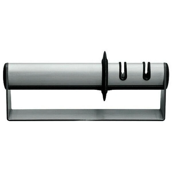 Der Messerschärfer ist einfach zu bedienen, ungefährlich und für alle Hobbyköche, die Wert auf gut geschärfte Messer legen, ein nützliches und obendrein platzsparendes Utensil. Das Gerät kann sowohl von Rechts- als auch von Linkshändern benutzt werden.